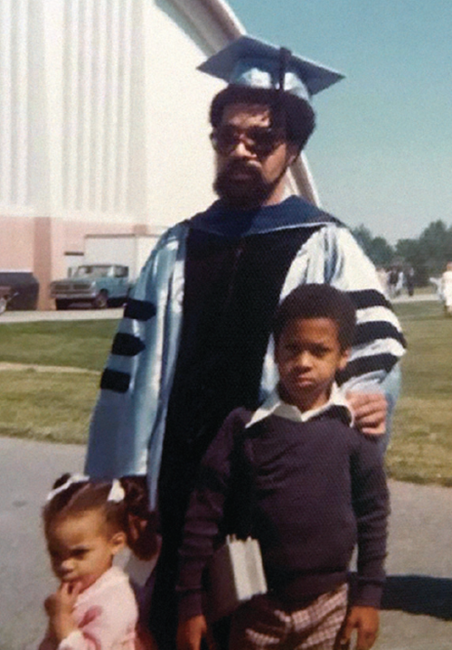 FIGURE 13. Clyde Bishop, the first graduate of the PhD in Urban Affairs and Public Policy, at the 1976 UD Commencement with his children.
