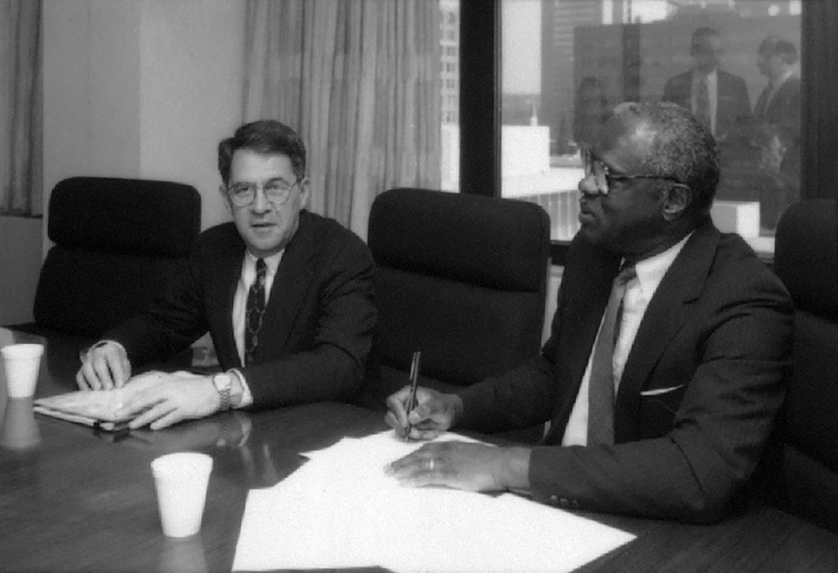 FIGURE 16. UD President David Roselle and Wilmington Mayor James H. Sills sign the agreement to establish the Wilmington Community Development Partnership, 1994.